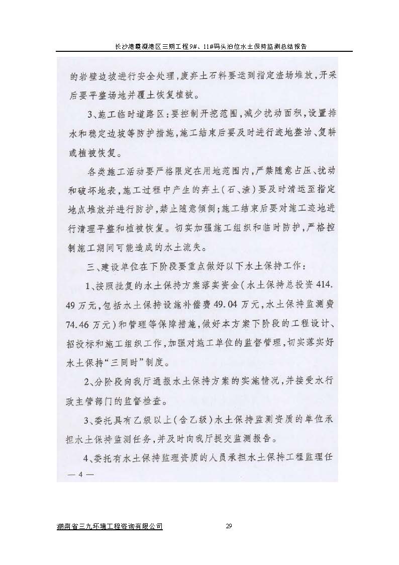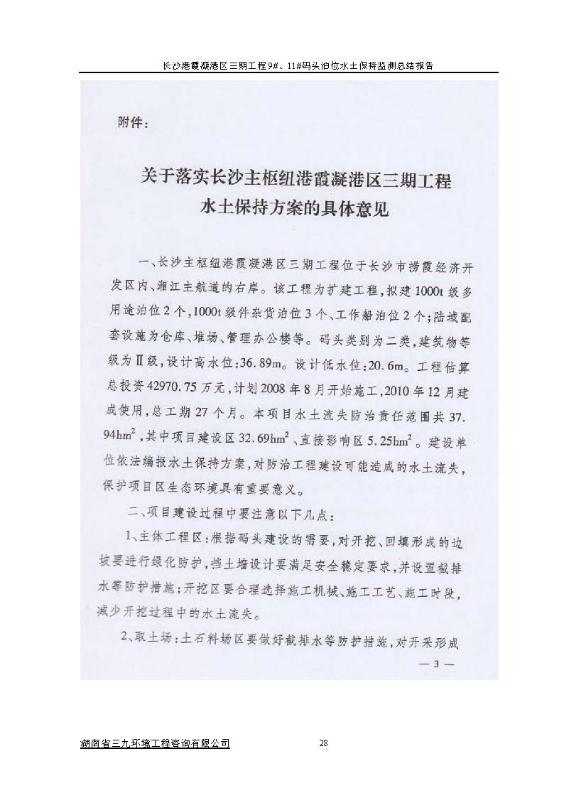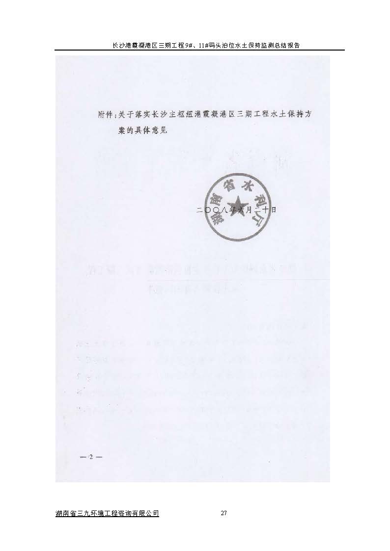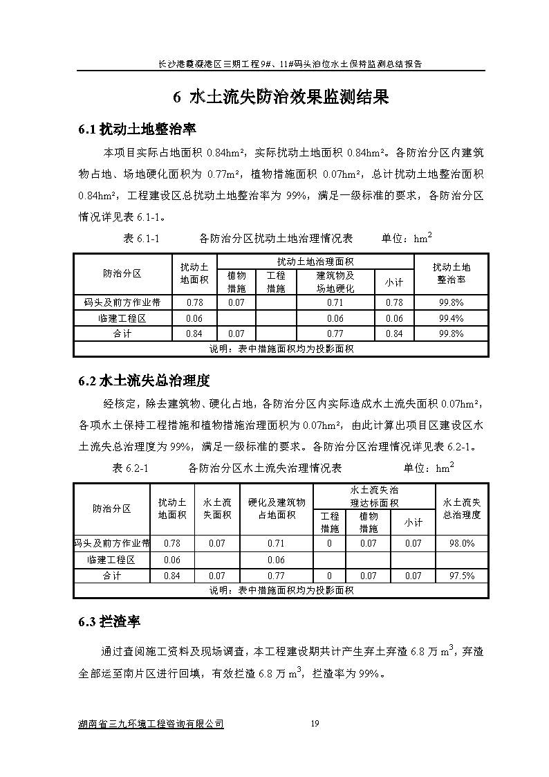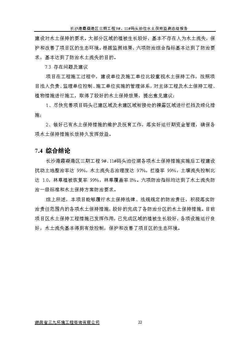 根據(jù)水利部關(guān)于加強事中事后監(jiān)管規(guī)范生產(chǎn)建設(shè)項目水土保持設(shè)施自主驗收的通知(水保(2017) 365號)、《湖南省水利廳關(guān)于下放部分生產(chǎn)建設(shè)項目水土保持方案審批權(quán)限的通知》(湘水辦[2017]116號)和《長沙市水務(wù)局關(guān)于簡化生產(chǎn)建設(shè)項目水土保持方案及水土保持設(shè)施驗收有關(guān)事項的通知》(長水發(fā)〔2017〕27號)規(guī)定,2018年7月3日,湖南長沙新港有限責(zé)任公司主持召開了長沙港霞凝港區(qū)三期工程9#、11#碼頭泊位水土保持設(shè)施驗收會議,會議成立了驗收組。 通過深入工程現(xiàn)場核查,并查閱相關(guān)檔案資料,驗收小組認(rèn)為本工程積極落實了各施工區(qū)域的水土流失防治工作,水土保持設(shè)施質(zhì)量總體合格,水土流失防治指標(biāo)達(dá)到了水土保持方案確定的目標(biāo)值,符合水土保持設(shè)施竣工驗收的條件。驗收組一致同意長沙港霞凝港區(qū)三期工程9#、11#碼頭泊位水土保持設(shè)施通過驗收。經(jīng)驗收組與會議審議,形成了《長沙港霞凝港區(qū)三期工程9#、11#碼頭泊位水土保持設(shè)施自查驗收鑒定書》。