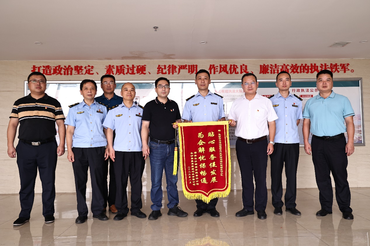 長沙市湘江綜合樞紐工程辦公室負(fù)責(zé)人丑金科表示,感謝新港公司送來了清涼,同時也溫暖了人心;改善湘江通航條件、服務(wù)港航企業(yè)是樞紐辦的職責(zé)所在;歡迎各家優(yōu)秀企業(yè)與樞紐辦交換意見,互相學(xué)習(xí),共同成長,為構(gòu)建高質(zhì)量湘江綜合樞紐共同努力。 長沙市交通運(yùn)輸綜合行政執(zhí)法局湘江樞紐執(zhí)法大隊長賀利表示,感謝新港公司的清涼物資;保障湘江樞紐水域水上交通安全、維護(hù)水運(yùn)通航秩序,湘江樞紐執(zhí)法大隊責(zé)無旁貸;未來,湘江樞紐執(zhí)法大隊將繼續(xù)堅守在水上執(zhí)法一線。