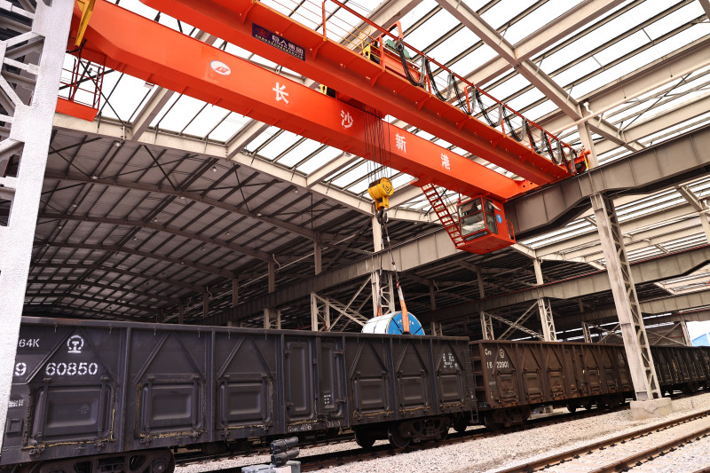 長(zhǎng)沙新港專用鐵路正在裝卸作業(yè)。 均為長(zhǎng)沙晚報(bào)全媒體記者 王志偉 通訊員 金添毅 攝 2月4日,一列由婁底漣鋼生產(chǎn)的工業(yè)鋼材共80車經(jīng)鐵路運(yùn)輸至長(zhǎng)沙新港,從碼頭裝船發(fā)運(yùn)至上海,當(dāng)天運(yùn)量達(dá)到4500噸。2023年,長(zhǎng)沙首條疏港專用鐵路在長(zhǎng)沙新港正式通車運(yùn)營(yíng),實(shí)現(xiàn)了港口鐵路與京廣線國(guó)鐵干線的無縫銜接,打通了長(zhǎng)沙水鐵聯(lián)運(yùn)“最后一公里”,多式聯(lián)運(yùn)降低了企業(yè)運(yùn)輸成本,深受市場(chǎng)歡迎。數(shù)據(jù)顯示,長(zhǎng)沙新港專用鐵路運(yùn)營(yíng)至今,共到發(fā)車數(shù)超3.1萬車,貨物運(yùn)量超186萬噸。