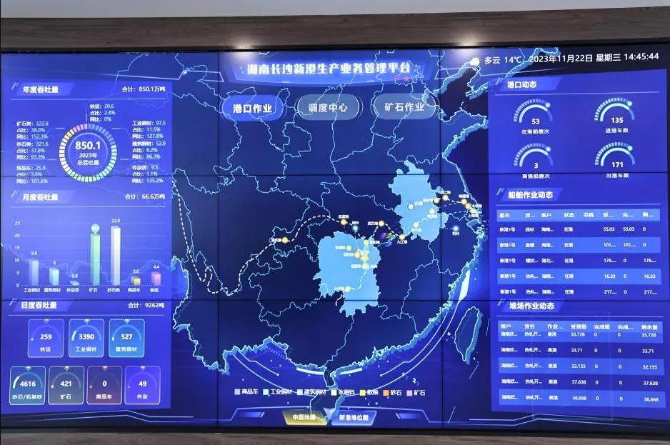 2023年6月,歷時三年建設(shè)的長沙新港專用鐵路正式通車運營,標(biāo)志著省會長沙首條疏港鐵路全線貫通,徹底打通公鐵水多式聯(lián)運“最后一公里”。這一突破性工程不僅讓港口邁入“公鐵水”多式聯(lián)運新時代,更成為撬動業(yè)務(wù)增量的核心引擎。專用鐵路開通以來,鐵路貨運量從2023年的30.6萬噸攀升至2024年的143.5萬噸,業(yè)務(wù)模式從貨源單一到達拓展至“雙向物流”,成功引進煤炭“散改集”、鋼材“公轉(zhuǎn)鐵”等新業(yè)態(tài),鐵路運輸貨物品類增至10余種。蓬勃發(fā)展的多式聯(lián)運業(yè)務(wù)助力“一帶一路”、長江經(jīng)濟帶發(fā)展,初顯成效。 創(chuàng)新賦能:智慧綠色雙引擎驅(qū)動升級