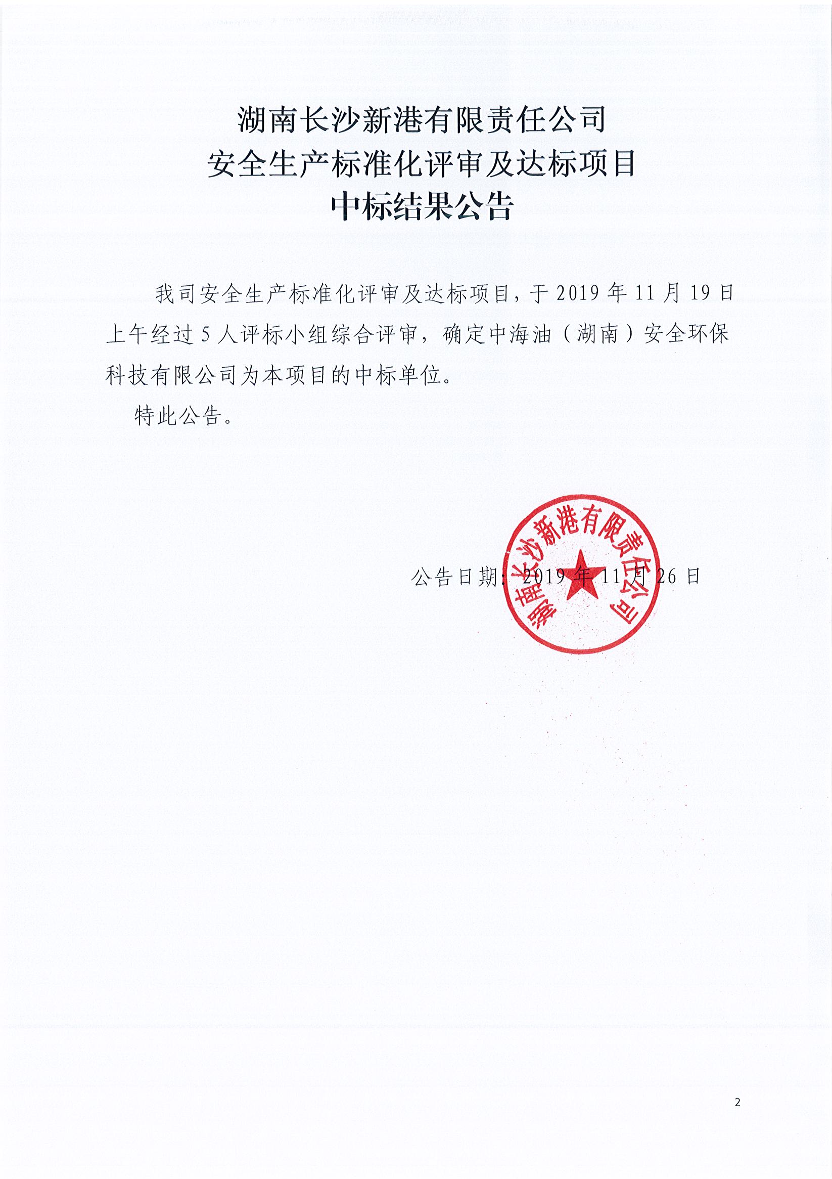 安全生產(chǎn)標(biāo)準(zhǔn)化評(píng)審及達(dá)標(biāo)項(xiàng)目中標(biāo)結(jié)果公告