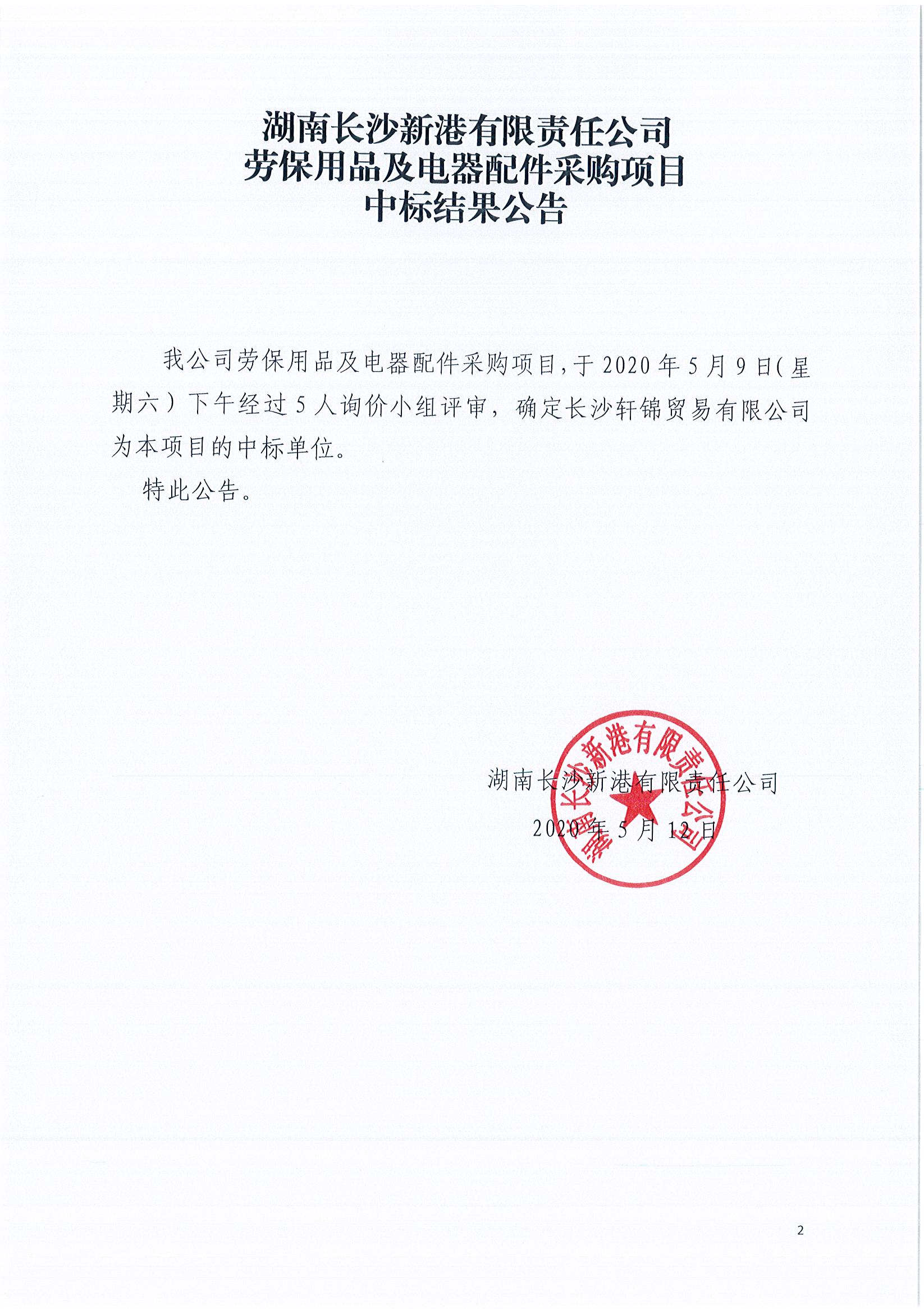 勞保用品及電器配件采購項(xiàng)目《中標(biāo)結(jié)果公告》