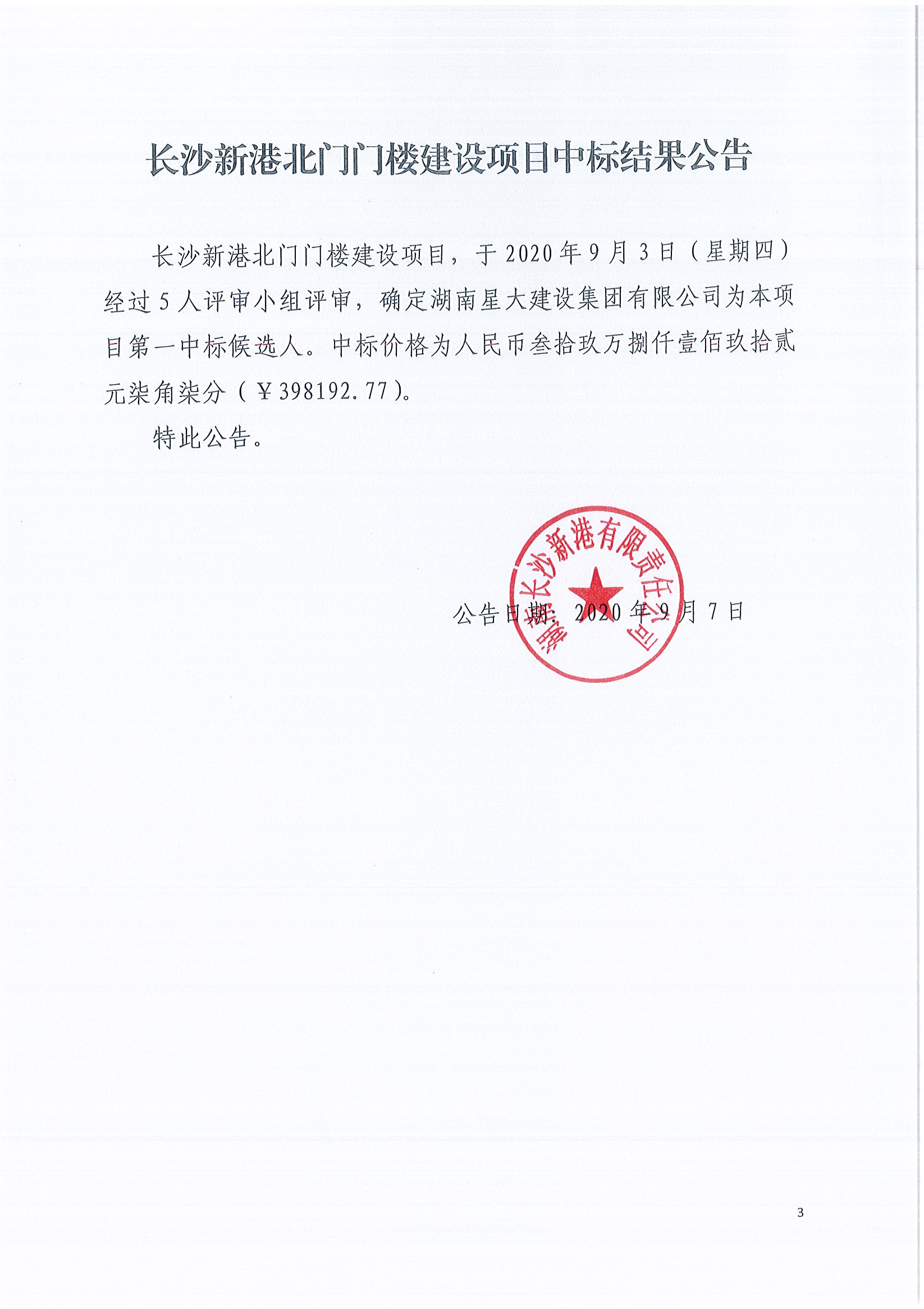長沙新港北門門樓建設(shè)項目中標(biāo)結(jié)果公告