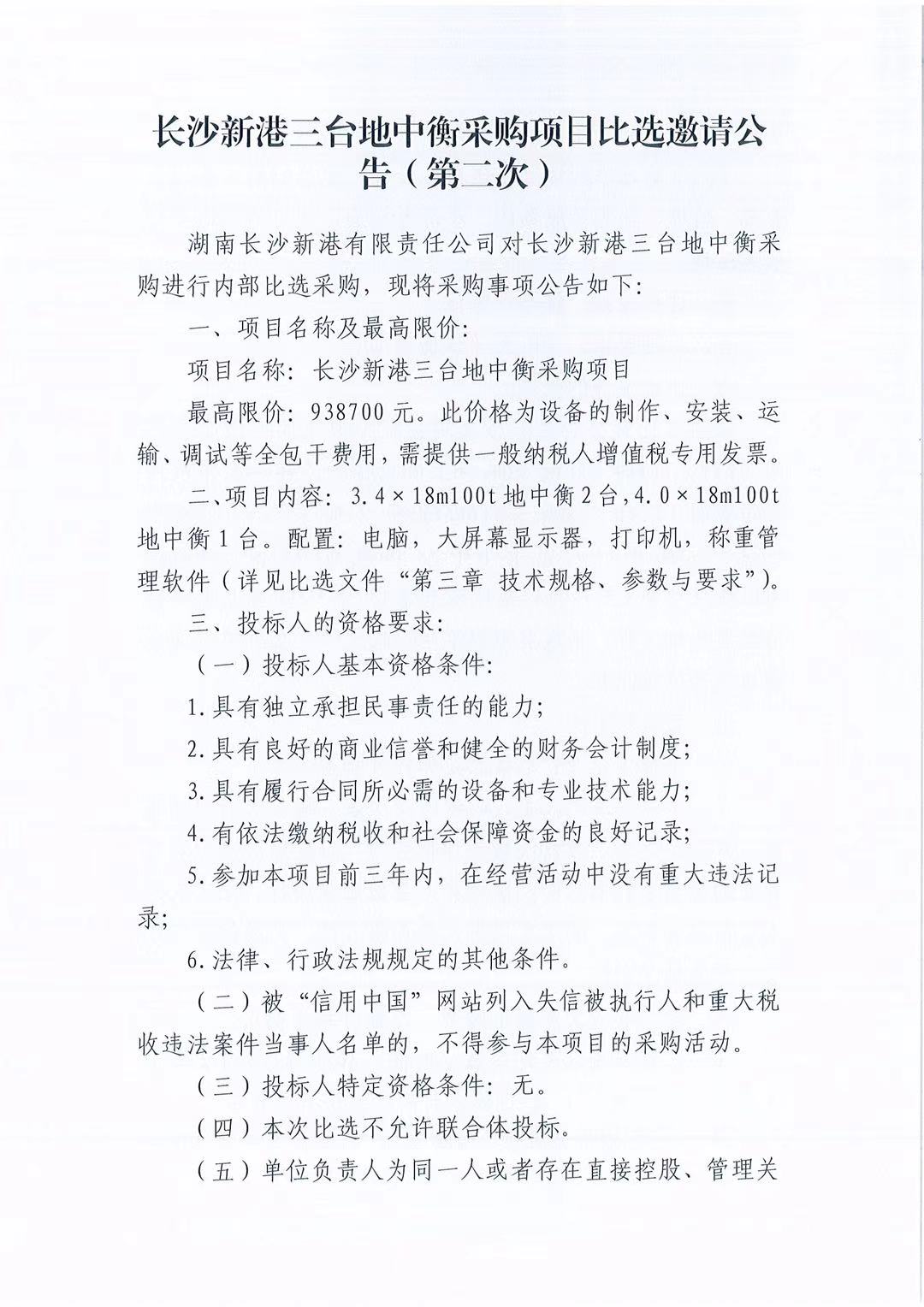 長沙新港三臺地中衡采購項目比選邀請公告(第二次)