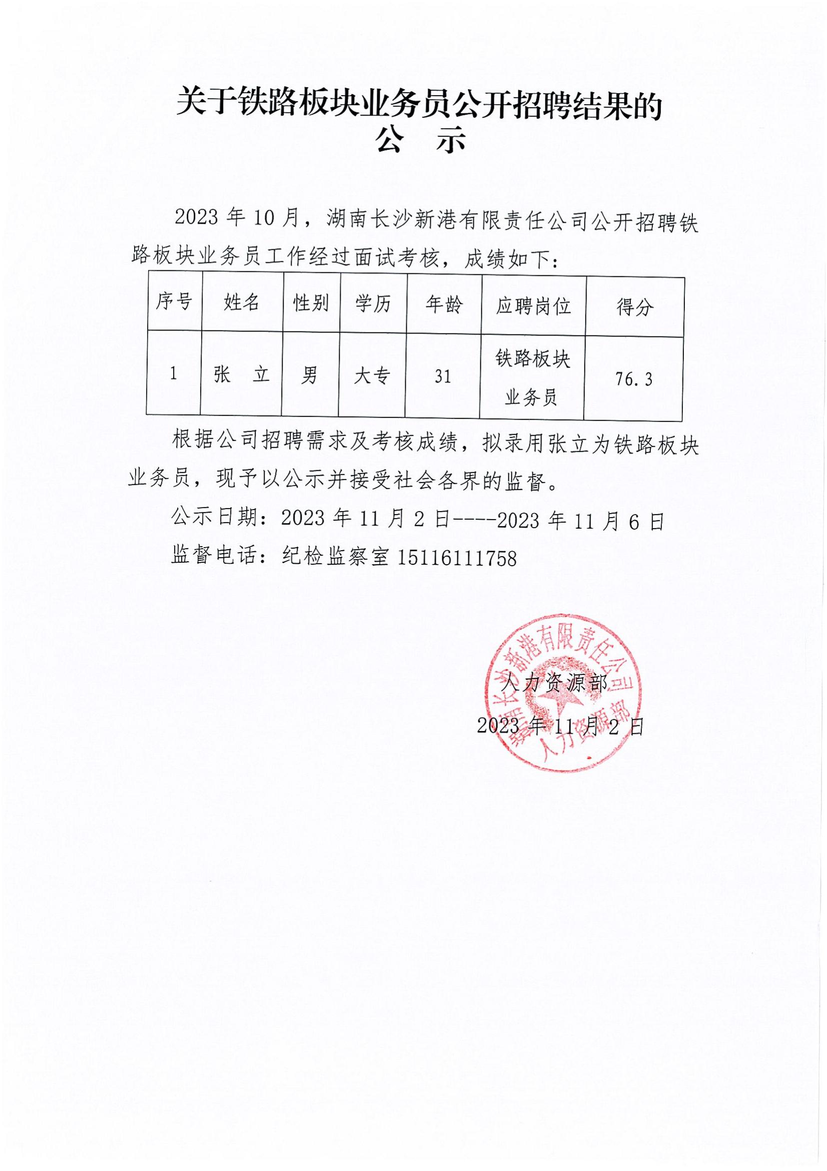 關(guān)于鐵路板塊業(yè)務(wù)員公開招聘結(jié)果的公示