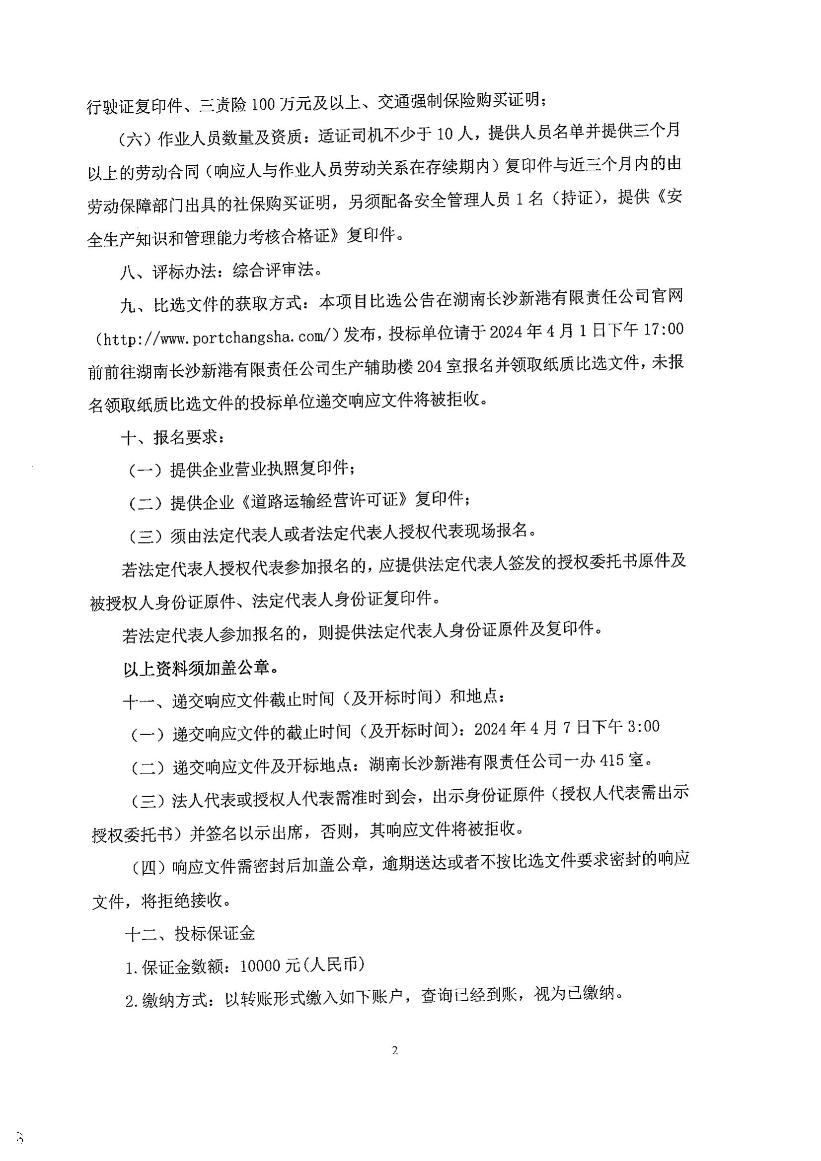 長沙新港件雜貨、鋼材、集裝箱汽運中轉(zhuǎn)業(yè)務(wù)外包項目比選公告